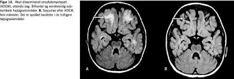 En MR-skanning af cerebrum (fem måneder) viste ADEM-sequelae (Figur 1B ).