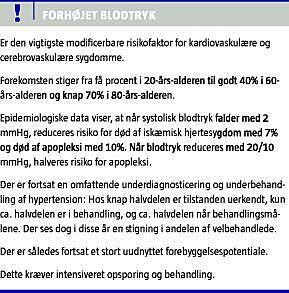 Vi står over for en stor udfordring vedrørende opsporing og effektiv behandling af forhøjet blodtryk samt andre kardiovaskulære risikofaktorer med det formål at opnå en yderligere omfattende reduktion i den kardiovaskulære og cerebrovaskulære morbiditet og mortalitet.