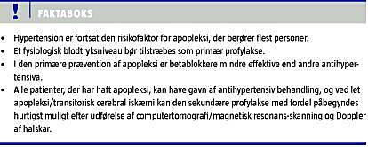 Apopleksi er den 3. hyppigste dødsårsag i den vestlige verden og den hyppigste årsag til invaliditet i voksenalderen. Hypertension er en vigtig risikofaktor for både iskæmisk og hæmoragisk apopleksi og for demens, og en effektiv blodtryksnedsættende behandling formår at ophæve det meste af den hypertensionsbetingede overhyppighed af disse tilstande.