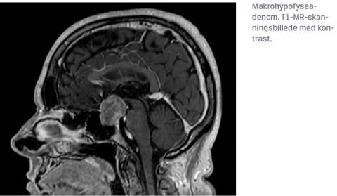 hypofyseinsufficiens efter kirurgisk behandling, hvor enkelte udvikler nytilkommen sekundær binyrebarkinsufficiens [6]. Ved secernerende HA er der hyppigt behov for yderligere behandling for at opnå remission. Ved et prolaktinom kan seponering af dopamin-D2-agonistbehandling forsøges efter 4-5 år hos enkelte patienter, afhængigt af tumorstørrelse etc. Efter en graviditet vurderes det, om dopamin-D2-agonistbehandling fortsat er indiceret. Der er behov for fortsat monitorering af patienten mhp. recidiv, herunder vækst af HA.