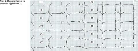 I. En tidligere rask 43-årig mand havde igennem nogle måneder haft hjertesvigtsymptomer i form af dyspnø og træthed, svarende til New York Heart Association (NYHA)-klasse II-III. En ekkokardiografi afslørede veludtalt DKM med en universelt hypokinetisk og dilateret venstre ventrikel (6,5 cm i slutdiastole) med en uddrivningsfraktion (EF) på 30%. Resultaterne af en koronararteriografi og myokardiebiopsi var normale. Patienten blev optitreret i hjertesvigtbehandling (perindopril og carvedilol), hvilket medførte nogen subjektiv bedring, men uændrede ekkokardiografiske forhold. Patienten havde i årevis bemærket tendens til ekstra hjerteslag, som ikke havde medført nævneværdige gener. Et elektrokardiogram (ekg) (Figur 1 ) viste tendens til hyppige VES af monomorf type med akse-drejning inferiort og mod højre, hvilket tyder på et fokus i venstre ventrikels udløbsdel. En Holter-undersøgelse viste 6.434 VES af monomorf type pr. døgn (normalt < 100). På mistanke om arytmiudløst DKM fik patienten otte måneder efter diagnosen foretaget radiofrekvensablation af det arytmogene focus. I overensstemmelse med ekg-fundet blev der i venstre ventrikel lige under annulus aortae påvist et focus, som blev ablateret med godt resultat. Ved en efterfølgende Holter-undersøgelse sås der kun enkelte VES. En måned efter indgrebet var tilstanden markant bedret, patienten var i NYHA-klasse I-II. En ekkokardiografi viste betydeligt bedret hjertefunktion med en EF på 50%, og ved kontrol efter yderligere fire måneder var patienten i NYHA-klasse I med normal ekkokardiografi.
