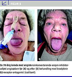 Angioødem, der involverer luftvejene, er potentielt livstruende og hyppigst relateret til komplement C1-inhibitor-mangel, angiotensinkonverterende enzym (ACE)-inhibitor-behandling eller anafylaksi. Ved ACE-hæmmer-behandling udvikles der angioødem hos op til 0,7% af patienterne [1], hvilket kombineret med en stor behandlingspopulation medfører, at ACE-hæmmere er en hyppig årsag til angioødem. Patofysiologien ved ACE-hæmmer-udløst angioødem involverer bradykinin (BK)-induceret aktivering af vaskulære BK-B2-receptorer [2]. Icatibant, der er en BK-B2-receptor-antagonist, blev i 2009 indregistreret i Danmark til behandling af hereditært angioødem (HAE). På baggrund af fælles patofysiologiske karakteristika er det sandsynligt, at icatibant også er effektivt til behandling af ACE-hæmmer-udløst angioødem [3]. Vi præsenterer den første danske patient med icatibantbehandlet livstruende ACE-hæmmer-udløst angioødem.