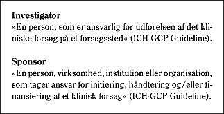 Hvis en læge gennemfører et lægemiddelforsøg på eget ini-tiativ, dvs. uden involvering af den virksomhed, der har markedsføringstilladelsen til lægemidlet, fungerer lægen både som investigator og sponsor. Lægen påtager sig herved både det overordnede ansvar for initiering og gennemførelse af forsøget (sponsors ansvarsområde) samt ansvar for forsøgspersonernes ve og vel (investigators ansvarsområde).