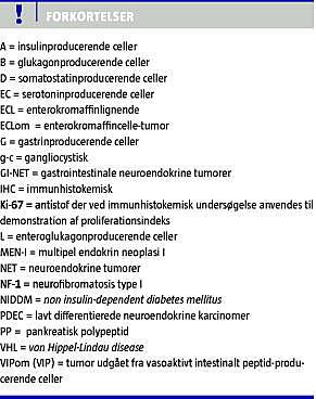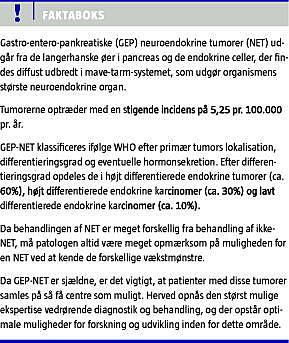 Gastro-entero-pankreatiske (GEP) neuroendokrine tumorer (NET) udgår fra de langerhanske øer i pancreas og fra endokrine celler, der er diffust udbredt i gastrointestinal (GI)-kanalen, som udgør organismens største neuroendokrine organ [1-3].