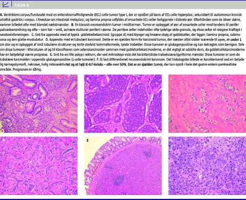 Summary Incidence, pathology & clinical course and symptoms of neuroendocrine gastrointestinal tumours Ugeskr Læger 2010;172(43):2946-2950 Gastro-entero-pancreatic neuroendocrine tumours (GEP NETs) are unusual. Their incidence, the different tumour types and growth patterns are described. The tumours should be classified according to the WHO 2000 classification and the Tumour Node Metastasis classification according to guidelines from the European Neuroendocrine Tumour Society. Important parameters are localization, size, hormonal secretion, mitotic index, and proliferation index (Ki-67) of the primary tumour.Patients with GEP NET should be referred to as few centres as possible in order to obtain the highest experience and the greatest understanding of these tumours thereby achieving the capacity to offer patients the best possible treatment and to create optimal conditions for research.