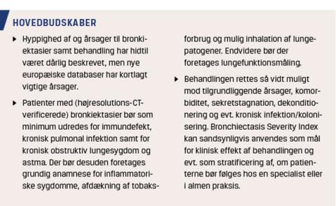 infektioner [1]. I 2010 udgav British Thoracic Society (BTS) sin seneste kliniske retningslinje om bronkiektasier [1]. Siden er data fra mange patienter, som har