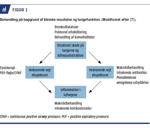 Når bronkiektasier diagnosticeres, er det vigtigt, at et standardiseret udredningsprogram følges (se nedenfor), således at patienten bliver karakteriseret så godt som muligt ud fra de kendte kliniske fænotyper, hvilket kan muliggøre individualiseret behandling. Målet med bronkiektasibehandlingen er at hindre eksacerbationer, reducere symptomerne, forbedre livskvaliteten og hindre fald i lungefunktionen under samtidig afvejning af fordele og ulemper ved en given behandling [5]. Ud over mulig årsag og klinisk fænotype kan en vurdering af sværhedsgraden også være retningsgivende for behandlingen. Formålet med denne artikel er at beskrive de seneste forskningsresultater og på baggrund af dem at foreslå individualiseret behandling.