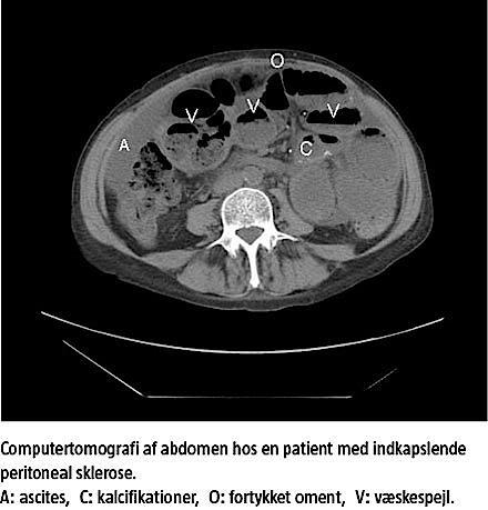 En 58-årig kvinde blev indlagt med mavesmerter, vægttab og omfangsforøgelse af abdomen. Syv måneder forinden var hun blevet nekronyretransplanteret efter otte års ukompliceret PD. Objektivt var hun afebril og normotensiv, men man fandt, at hun var malnutrieret, og man havde mistanke om ascites. Blodprøverne viste bl.a. en C-reaktivt protein-koncen-