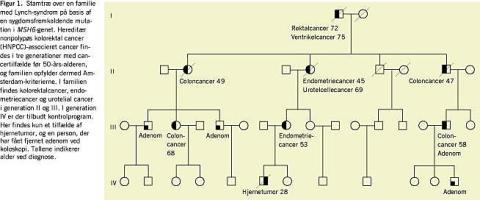 Af de 3.500 danskere, som årligt rammes af kolorektalcancer, skønnes 10-30% at have en arvelig form for cancer. Hereditær nonpolypøs kolorektalcancer (HNPCC) er den hyppigeste form og udgør 2-4% af kolorektalcancer [1]. Opsporing af disse familier er af stor værdi for at kunne tilbyde kontrolprogrammer, der kan forhindre yderligere cancertilfælde i familien og øge den forventede levetid for højrisikopersoner.