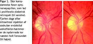 Uveitis kan føre til blindhed, men ofte er det de systemiske bivirkninger ved immunsuppressiv behandling, der volder størst ulempe for patienten. Ved flere former for uveitis er forhøjet aktivitet af vaskulær endotelial vækstfaktor (VEGF) utvivlsomt til stede, specielt sådanne hvor der sker karnydannelse. Derfor er et af de vigtigste spørgsmål p.t., om nye potente inhibitorer af VEGF, som på få dage totalt kan elimi-nere karnydannelse forårsaget af f.eks. diabetisk retinopati (Figur 1 ), også vil være af værdi i behandlingen af uveitis.