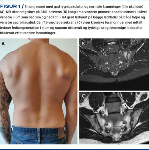 Forandringer i sacroiliacaleddene set på MR-skanning alene er for uspecifikt et fund – diagnosen hviler på symptomer samt klinike og billeddiagnostiske fund.