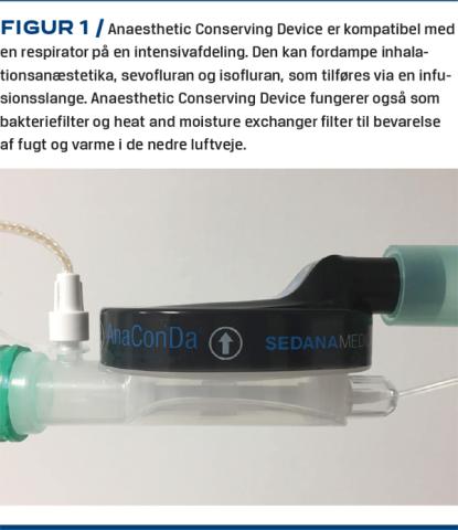 AnaestheticConserving Device (Figur 1) er et lille anæstesisystem, som kan anvendes med en respirator på intensivafdelinger. Den kan fordampe sevofluran og isofluran. AnaestheticConserving Deviceer et svensk produkt og anvendes i store dele af verden [7]. På markedet er der et tysk produkt, MIRUS Controller, som også kan administrere inhalationsanæstetika sammen med en respirator på intensivafdelinger. I denne artikel beskrives kun AnaestheticConserving Device.