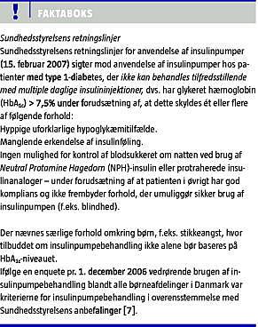 - Olsen BS, Johannesen J. Insulinpumpe til børn med type 1-diabetes. Ugeskr Læger 2007;169:1101.