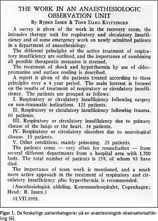 - Ibsen B, Kvittingen TD. Arbejdet på en anæsthesiologisk observationsafdeling. Nordisk Med 1958;60:1349-55.