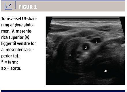 Under udredninger af kroniske eller intermitterende mavesmerter hos børn bør der foretages en UL-skanning af abdomen. Normalt ligger SMV til højre for SMA, og finder man ved UL-skanning, at SMV ligger enten anteriort for eller til venstre for SMA, bør mistanken om malrotation opstå (Figur 1). Herefter skal man udrede yderligere med kontrastundersøgelse af gastrointestinalkanalen. Det er vigtigt at understrege, at normal beliggenhed af karrene ikke udelukker malrotation, og at kontrastundersøgelsen er guldstandard. UL-skanning af abdomen anses dog for at være en god undersøgelse til screening for malrotation [5].