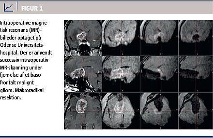 Foruden systemets elegante integration med bNeuN, anvendes iMRI til successiv resektionskontrol under hjernetumoroperationer, og der er på Odense Universitetshospital nu blevet opereret over 100 patienter under anvendelse af iMRI. Patienternes lidelser var fordelt på glioblastomer (Figur 1), lavgradsgliomer og hypofyseadenomer; teknikken giver fremragende visualisering af de transsfenoidale forhold, herunder chiasma opticums successive dekompression. Det er i et prospektivt, randomiseret studie blevet påvist, at brugen af iMRI optimerer resektionsgraden af maligne gliomer [2].