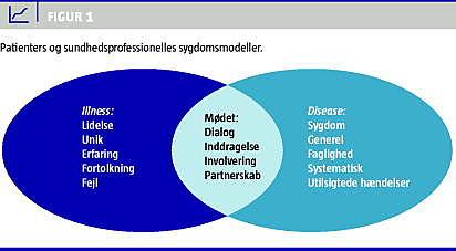 Samarbejdsrelationen mellem patienter og sundhedsprofessionelle kan illustreres med illness-disease- modellen (Figur 1 ) [10].