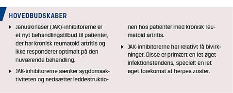 I denne artikel er der fokus på to nye JAK-inhibitorer, tofacitinib og baricitinib, til behandling af kronisk reumatoid artritis.