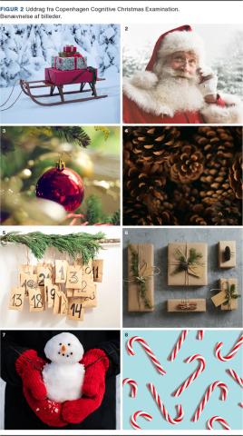 Juletid er hyggetid og forbundet med glædelige minder [5]. Vi har derfor udarbejdet en test med juletema, hvorved julens glæder kan tilføjes som element i en ellers temmelig objektiv kognitiv test. Hensigten var at konstruere en test, der nøjagtigt testede kognitive delelementer på en motiverende og muligt opløftende vis. Resultatet af disse bestræbelser er blevet til testen Copenhagen Christmas Cognitive Examination (CCCE) (Figur 1). Vores hypotese var, at CCCE kunne øge motivationen for kognitiv testning og muligvis ville medføre en positiv emotionel reaktion på de undersøgte.