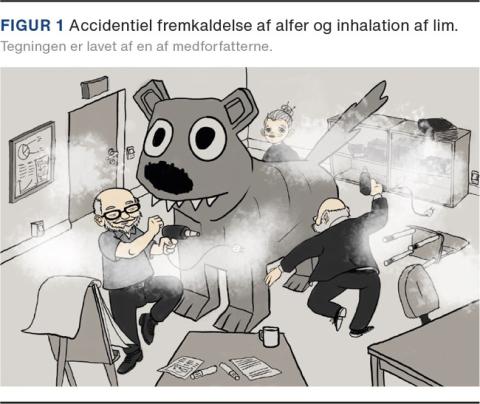 I mangel på eksisterende relevant faglitteratur blev udregning af sample size vanskeliggjort. I stedet blev erfaringer om alfetiltrækning høstet i en tidligere udgave af Danmarks Jurist- og Økonomforbunds ugemagasin Djøfbladet med undertitlen »Mere proces, mindre sundhed«[3]. Her kunne en unavngiven hospitalsleder på et dansk hospital berette om et uheld ved et kreativt udviklingsseminar: I forbindelse med formgivningen af effektivisering, her udtrykt som en to meter høj fritte i papmaché, var alfer set danse rundt om halvdelen af de deltagende medarbejdere under samtidig inhalation af røgen fra en vildfaren limpistol (Figur 1). Af politisk korrekte årsager var alle indkøbte kreative materialer (lim inklusive) lavet på økologisk skovmærke. Heraf kan vi udlede, at mindst syv personer i hver gruppe skulle bruges for, at halvdelen af forsøgspersonerne eksponeret for skovmærkegin ville tiltrække alfer sammenlignet med ingen i de to andre grupper (power 80%, alpha 5%).