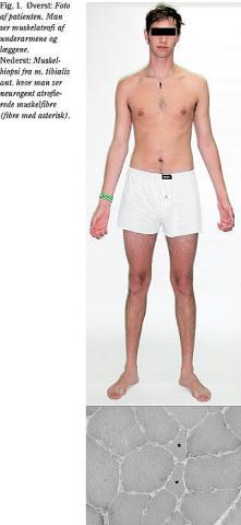 En 19-årig tidligere rask mand havde i trekvart år observeret, at hans venstre lillefinger hang ud til siden, og at der var muskelsitren på underarmene og i hænderne. Dette havde generet ham under hans svømmetræning, som han dyrkede på konkurrenceniveau. Patienten havde altid klaret sig godt motorisk. Forældrene og en 14-årig søster var raske.