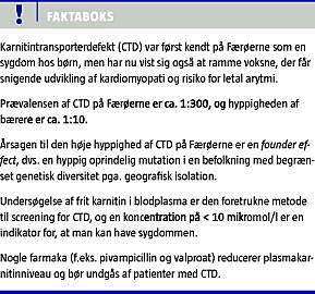 Sygdommen karnitintransporterdefekt (CTD) er meget hyppigere på Færøerne end andre steder i verden, og den har vakt stor interesse i de seneste år, ikke mindst blandt færingerne. Dette skyldes primært to uventede dødsfald af unge færøske voksne - et mønster man ikke har set før i forbindelse med CTD.