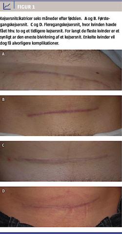 efter andre kirurgiske indgreb, men forekommer desuagtet hos 4-18% ét år efter et kejsersnit, med daglige smerter hos 1-6% [16]. Smerterne påvirker dagligdagen hos 1,4-14%, og forekommer fortrinsvist i cikatricen med øget risiko ved flere tidligere kejsersnit (Figur 1) [14]. Der er ikke forskel i risikoen for kroniske smerter efter hhv. akut og elektivt kejsersnit.