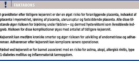 Kejsersnit udgør 21% af de danske fødsler. Korttidskonsekvenserne ved kejsersnit i form af øget risiko for maternel infektion og venøs tromboemboli samt barnets risiko for respiratorisk distress og indlæggelse på neonatalafdeling er velkendte, men først i de senere år har der været fokus på langtidskonsekvenserne.