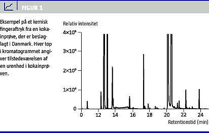 Retsmedicin er et fagområde, som omfatter mange forskellige delspecialer. Et af disse er retskemi , som i de senere år har gennemgået en betydelig udvikling. Retskemisk Afdeling varetager traditionelt de toksikologiske undersøgelser i forbindelse med retspatologiske og kliniske retsmedicinske sager. Siden 2007 er antallet af kliniske sager steget kraftigt i forbindelse med folketingets ændring af færdselsloven [1]. Et andet traditionelt retskemisk arbejdsområde er analyse af pulvere, tabletter og andre effekter for indhold af euforiserende stoffer. Dette arbejde udføres primært for politiet og de kriminaltekniske centre og suppleres desuden med en række specialundersøgelser. En af de specialundersøgelser, som i stigende grad efterspørges i opklaringsarbejdet, er den kemiske sammenligning også kendt som »det kemiske fingeraftryk«. Undersøgelsen, som foretages på illegalt fremstillede stoffer, har til formål at afklare, om to eller flere -beslag af narkotika har fælles oprindelse. Selve grundlaget for undersøgelsen er en analyse af de mange kemiske urenheder, som findes i stofprøverne. Urenhederne, som optræder i mindre koncentrationer, er egentlig biprodukter, der er dannet under den illegale og ofte ukontrollerede produktion af stofferne. To forskellige partier af eksempelvis amfetamin vil derfor indeholde forskellige mængder af urenheder. Ved en kemisk analyse kan de forskellige urenheder identificeres og koncentrationsbestemmes, hvorved der fremkommer et »kemisk fingeraftryk", der er specifikt for hvert enkelt parti, som fremstilles (Figur 1 ). Da det kemiske fingeraftryk er uforandret ved en fortynding af prøven og forbliver relativt stabilt ved længere tids opbevaring, er det velegnet til brug for sammenligning af stofprøver, der er beslaglagt på forskellige lokaliteter og gerningstidspunkter.