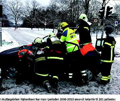 En retrospektiv søgning i internt databasemateriale foretaget af denne artikels forfattere viser, at man i Akutlægebilen i København i perioden 2006-2010 anvendte ketamin i 201 tilfælde.
