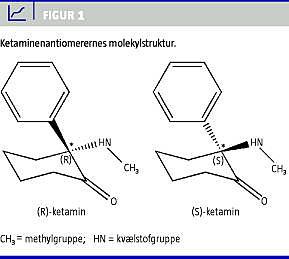 Ketamin består af to stereoisomerer S(+) og R(-) (Figur 1 ). I Danmark er både præparater med den racemiske blanding (f.eks. Ketalar) og præparater udelukkende med den oprensede S(+)-enantiomer (f.eks. S-ketamin) tilgængelige (Tabel 1 ).