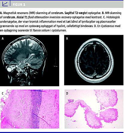 Patienten blev opereret via en lille kraniotomi. Processen blev fridissekeret mikrokirurgisk og blev fjernet en bloc. En histologisk undersøgelse viste tegn til kronisk inflammation med et tæt bånd af inflammatoriske celler, der grænsede op mod en cystevæg. I cystelumen fandtes en Cysticercus med en opbygning svarende til Taenia solium (Figur 1C og 1D).
