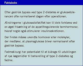 Fedmekirurgi har medført interessante observationer omkring patogenesen til type 2-diabetes. Dette aspekt vil blive diskuteret i aktuelle statusartikel.