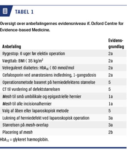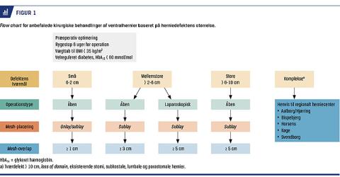 På grund af tvivlsom evidens for den bedste kirurgiske behandling af ventralhernier blev der i 2009 afholdt et konsensusmøde i regi af Dansk Herniedatabase (DHDB) for at fastsætte en national behandlingsstrategi [2]. Siden da er der tilkommet afgørende nye studier. Desuden har man med etableringen af den landsdækkende ventralherniedatabase i 2007 nu prospektivt indsamlet perioperative data fra mere end 37.000 opererede patienter [3].