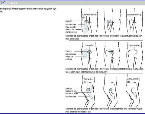 Dybe tryksår med enten blottede led, blottede knogler eller dyb infektion i form af ostitis kræver som regel kirurgisk behandling. Hos de patienter, der er immobile enten på grund af permanent rygmarvsskade eller generaliserede neurologiske lidelser, er kirurgisk rekonstruktion af området med en lap efter den kirurgiske revision ligeledes indiceret. Hos disse patienter ønskes der væv med stor stabilitet og funk-tionsduelighed. For at kunne opfylde disse krav er det oftest nødvendigt med en lokal laprekonstruktion [2].