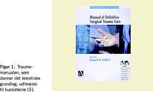 Næste led i implementeringen af DCL-konceptet omfatter en regelret efteruddannelse på speciallægeniveau, hvilket indledes ved gennemførelsen af det første danske definitive surgical trauma care course (DSTC) fra den 30. april til den 2. maj 2007. Kursus etableres i et samarbejde mellem DKS og Forsvarets Sundhedstjeneste og er et kursus under International Society of Surgerys delforening The International Association for The Surgery of Trauma and Surgical Intensive Care (IATSIC). IATSIC gennemfører DSTC flere forskellige steder i verden. Kurset varer tre dage og omfatter operationsøvelser på levende, bedøvede grise og veksler mellem teori (Figur 1 ) og sygehistorier, der underbygger teorien. Kursus er samtidig en del af et fælles skandinavisk initiativ, der udgør et samarbejde om deling af viden, opdatering af manualer og instruktører. Oplysninger om kursus findes på DKS's hjemmeside: www.kirurgisk-selskab.dk og www.trauma.org.