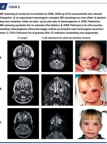 10-20% af IH er behandlingskrævende og oralt givet propranolol er i dag førstevalg [2, 6, 8, 11]. Slut-stadiet er variabelt, og korrektion med laser eller kirurgi kan blive nødvendig, når hæmangiomet er fuldt regredieret [2, 6, 8, 9] (Figur 1).
