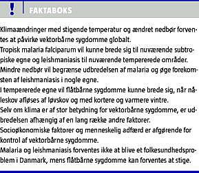 Vi vil i det følgende fokusere på tre vektorer og tilhørende sygdomme - malaria, leishmaniasis og flåtbårne sygdomme - som for nærværende er endemiske i troperne, subtroperne og i tempererede egne.