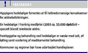 Forebyggelse af helbredsmæssige konsekvenser af hedebølge er mulig og derfor vigtig at have indarbejdet i den almene viden og hos de fagprofessionelle på alle niveauer.