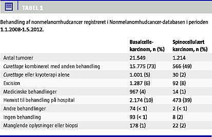 Nonmelanomhudcancer (NMSC) er den hyppigste kræftform i Danmark og udgør et voksende sundhedsproblem. Den hyppigste NMSC-form er basalcellekarcinom (BCC) og spinocellulært karcinom (SCC). I 2010 blev der anmeldt 12.290 nye NMSC-tilfælde til Cancerregistret, men BCC er underrapporteret [1]. Det er ikke muligt at få overblik over hyppighed, antal nye tilfælde, risikofaktorer eller prognosen for NMSC i Danmark med den eksisterende registrering. Dertil kommer, at NMSC behandles af forskellige specialer, i praksis og på hospitalerne, og at der er mange kirurgiske og medicinske behandlinger, som benyttes afhængigt af cancertype og udbredelse [2]. Behandlingerne adskiller sig fra hinanden med hensyn til effekt og pris, men man har kun i få studier belyst behandlingernes effektivitet [3]. Studier fra andre lande tyder på, at NMSC er en af de mest resursekrævende cancere for sundhedssystemet [4].