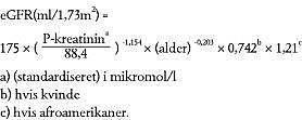 eGFR bør beregnes med den forkortede 4-variable Modification of Diet in Renal Disease (MDRD)-formel.