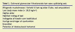Der kan endnu ikke anbefales brug af eGFR bestemt ud fra cystatin C til klinisk arbejde.