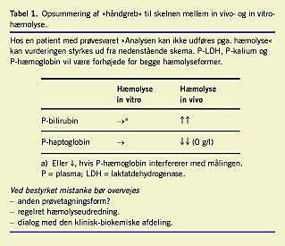 I specifikke tilfælde kan den kliniske biokemiker endvidere efter henvendelse fra klinikeren bidrage til sondringen mellem in vivo- og in vitro-hæmolyse (Tabel 1).