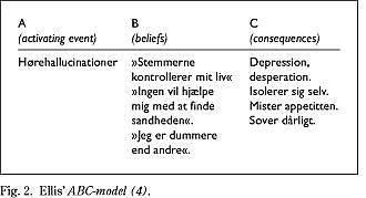 Gennem hele terapiforløbet blev der lagt vægt på samarbejdet mellem terapeut og patient ud fra triaden: varme-indfølelse-ægthed (7). Brug af sokratisk spørgeteknik (8) førte til en bedre forståelse af forbindelsen mellem hendes skemaer og depressionen. I den sammenhæng blev ABC-modellen brugt til at illustrere betydningen af den personlige fortolkning af stemmerne for hendes problemer.