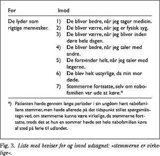 I fællesskab blev der skrevet en liste med beviser for og imod, at stemmerne skulle være virkelige (Fig. 3 ).