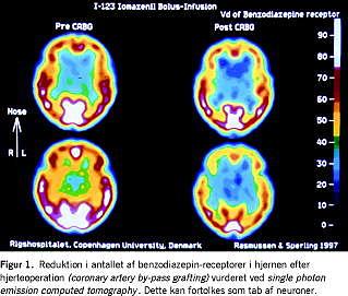 Det er efterhånden godt dokumenteret, at POCD er en hyppigt forekommende tilstand efter kirurgi, men årsagsforholdene er dårligt belyst. Den hyppige forekomst af POCD efter hjertekirurgi er muligvis relateret til peroperativ cerebral embolisering, cerebral hypoperfusion, hæmodilution eller en systemisk inflammatorisk reaktion. I nogle undersøgelser med brug af avanceret billeddiagnostik er der fundet strukturelle ændringer i hjernen forbindelse med hjertekirurgi, blandt andet et reduceret antal neuroner (Figur 1 ). En beskadigelse af hjernecellerne har været foreslået som en årsag til POCD, idet dyreeksperimentelle undersøgelser har fundet en neurotoksisk effekt af anæstesimidler, men også hormoner eller inflammatoriske mediatorer kan påvirke den kognitive funktion. Hospitalsmiljøet og mekanismer i forbindelse med sygdom og indlæggelse kunne også have betydning, f.eks. relateret til forstyrrelser i døgnrytme, søvnmønster samt fødeindtagelse, og søvnforstyrrelser synes at være associeret til POCD efter større kirurgi.