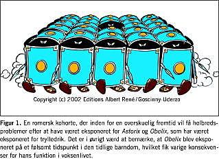 Ordet kohorte vil være velkendt af entusiastiske Asterixlæsere: Den romerske hær opdelte sine legioner i ti grupper, kohorter, hver på 300-600 soldater (Figur 1 ). Begrebet er senere blevet adopteret af den medicinske og demografiske verden. I A Dictionary of Epidemiology defineres en kohorteundersøgelse som »The analytic method of epidemiologic study in which subsets of a defined population can be identified who are, have been, or in the future may be exposed or not exposed, or exposed in different degrees, to a factor or factors hypothesized to influence the probability of occurrence of a given disease or other outcome. The main feature of cohort study is observation of large numbers over a long period with comparison of incidence rates in groups that differ in exposure levels.« [1].