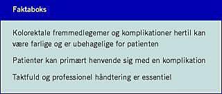 Patienter med retinerede analt introducerede kolorektale fremmedlegemer eller komplikationer hertil har brug for relevant håndtering. Situationen kan være farlig og er i alle tilfælde ubehagelig for patienten. Problemstillingen forekommer sjældent, om end incidensen formentlig er stigende. Retningslinjer for håndtering af denne situation mangler i mange lærebøger. Her gives et forslag til håndtering af patienter med retineret kolorektalt fremmedlegeme og af komplikationerne hertil.