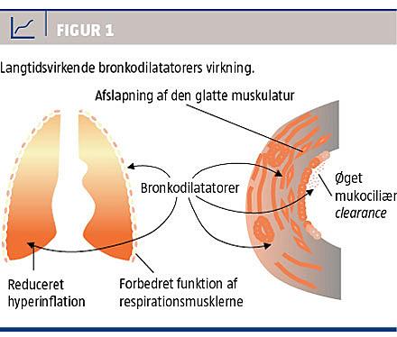 Vedvarende bronkodilatation antages også at bidrage til en reduktion i forekomsten af KOL-eksacerbationer, og selvom langtidsvirkende antikolinergika menes primært at reducere eksacerbationer via en reduktion i dynamisk hyperinflation, er det muligt, at både langtidsvirkende β2-agonister og langtidsvirkende antikolinergika har antiinflammatoriske effekter [24-26].