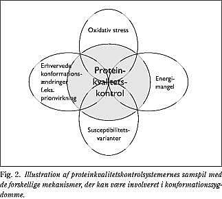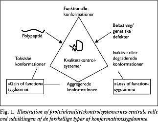 Konformationssygdommene har ikke nogen klinisk og patofysiologisk fællesnævner, men cellebiologisk eksisterer der en fælles forståelsesramme, nemlig cellens såkaldte proteinkvalitetskontrolsystemer, hvis vigtigste komponenter er molekylære chaperoner og intracellulære proteaser (1, 17-20) (Fig. 1 ).